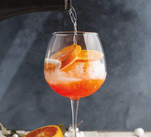 Although Spritzes are usually enjoyed when the weather is warm and the days are long, this blood orange mix makes a spritz you are going to crave even when it's cold outside. The deep hue of the blood orange juice and the natural sweetness pair so well with the bitter Aperol flavour. Top up with Prosecco to get some fizz and you have an easy, tasty winter spritz