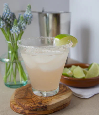 Rhubarb margarita...why not? This versatile mix goes great with most spirits - tequila included. I love to rim the edge with pink Himalayan salt to match the pretty pink colour of the drink. Don't forget the Triple Sec - it adds a great hint of orange that elevates this cocktail.